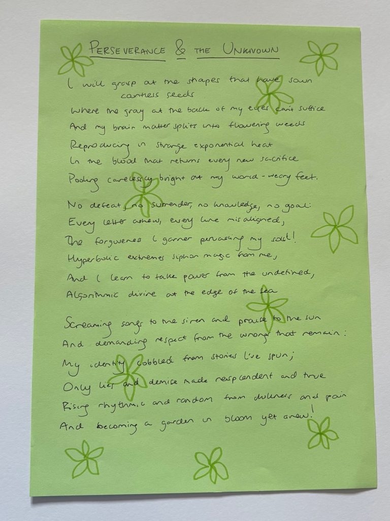Work made during the Poetry workshop on Saturday 4th October 2025