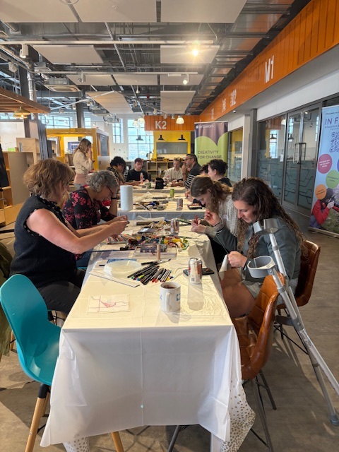 ‘I love creation. I’ve had this in my diary for weeks – it’s an opportunity to make and share. I walked in unsure of what to expect, but everyone was so lovely. I had so much fun – the prompts were really helpful and I enjoyed sharing with everyone.’