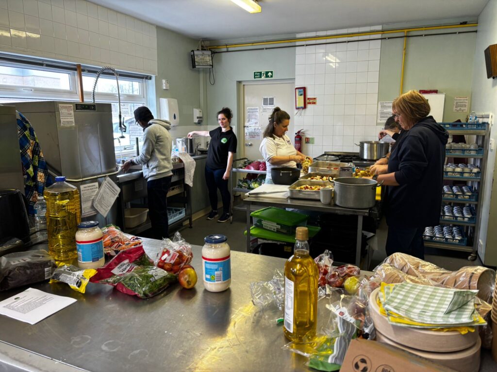 Each session features a hands-on cooking class led by a local chef, demonstrating how to prepare healthy, affordable dishes using food bank ingredients and surplus food. After cooking, participants come together to enjoy the meal they’ve created.